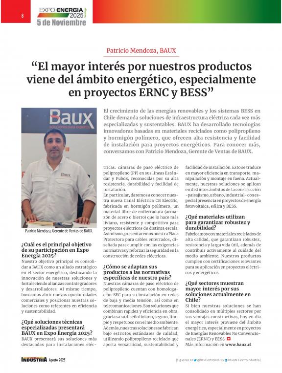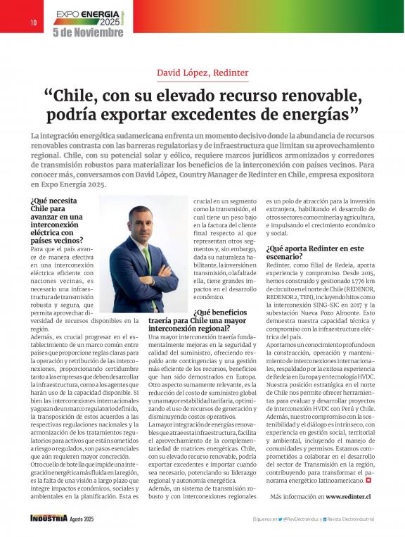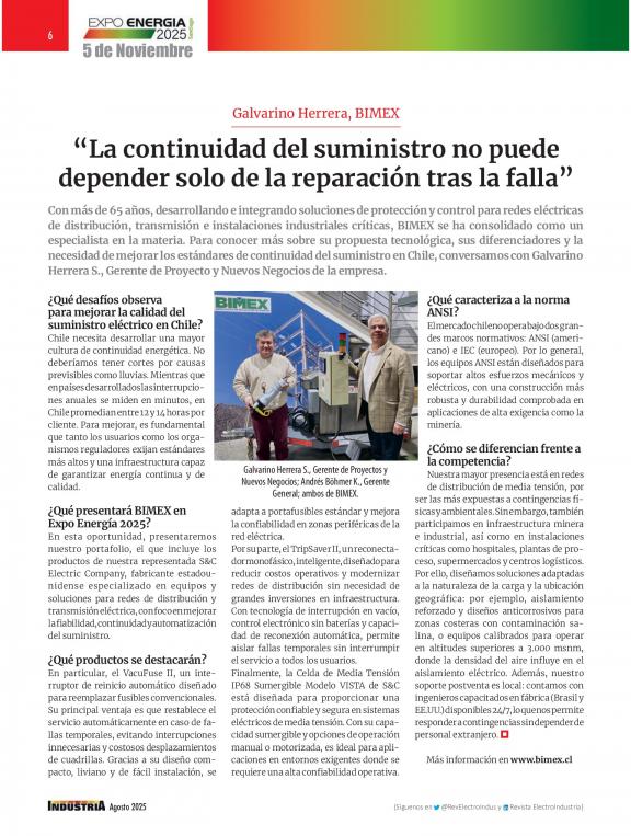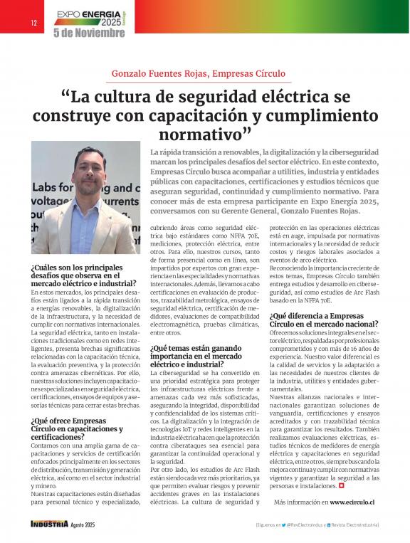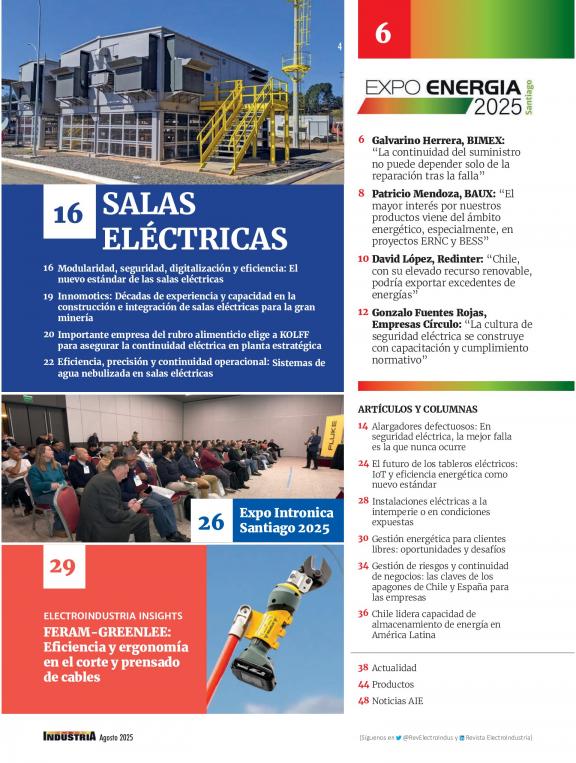 ElectroIndustria es una revista especializada en temáticas focalizadas en productos y soluciones eléctricas, electrónicas, de automatización, comunicaciones e informática industrial. Circula mensualmente, abarcando todos los sectores productivos y de servicios a nivel nacional.